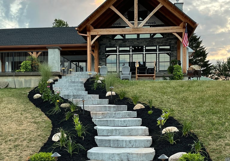 Based in Machias, NY, we are a family-owned and operated business specializing in new hardscape installations, including paver patios and walkways, boulder and retaining walls, and custom water gardens. We are also a flower farm, growing and celebrating the beauty of seasonal blooms—most notably our extensive dahlia collection.